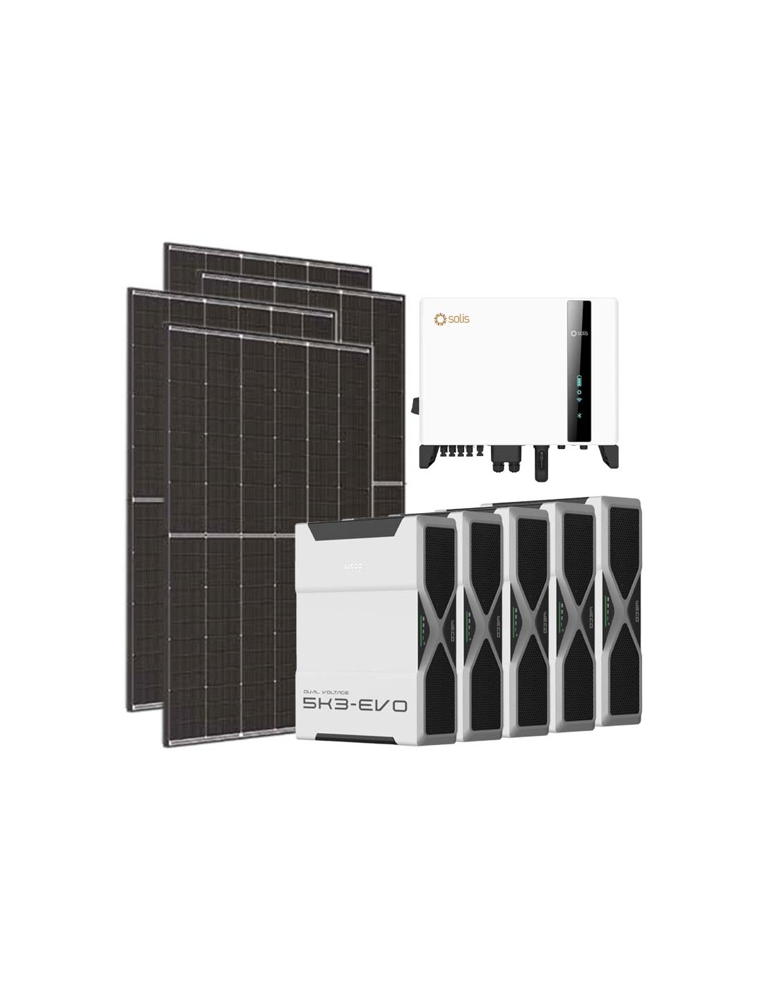 Dreiphasiges Photovoltaik-Kit 10800W Wechselrichter Solis 10kW Lithium 26.1kWh Weco EVO 5k3