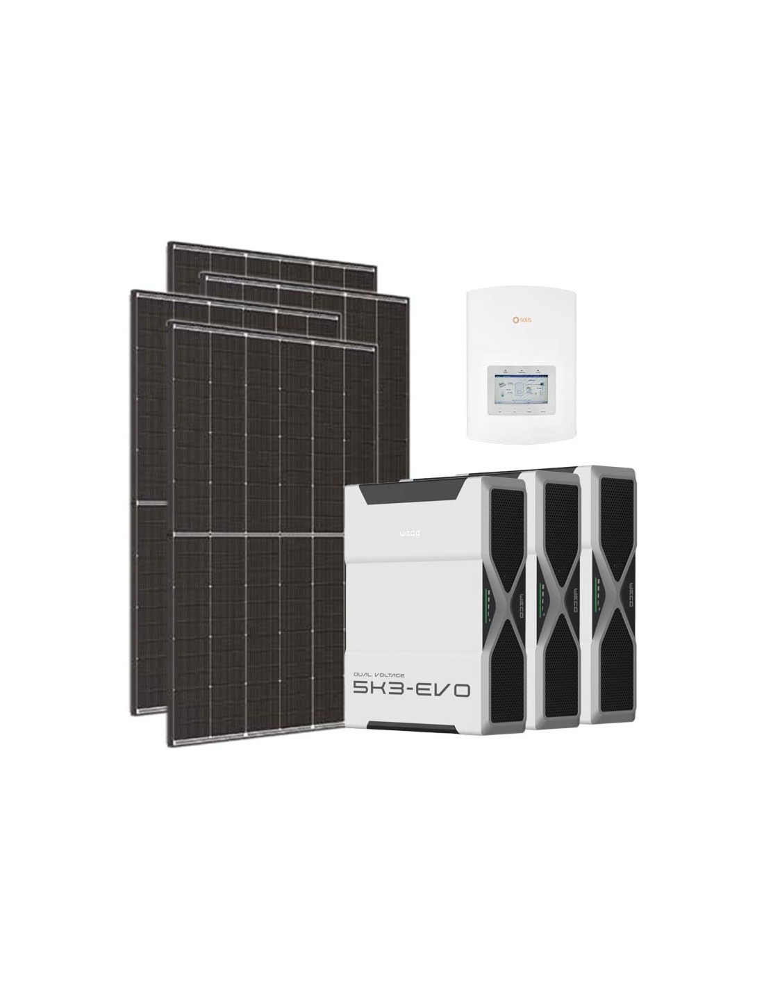 Einphasiges Photovoltaik-Kit 6300W Wechselrichter Solis 6kW Lithium 15.6kWh Weco EVO 5k3