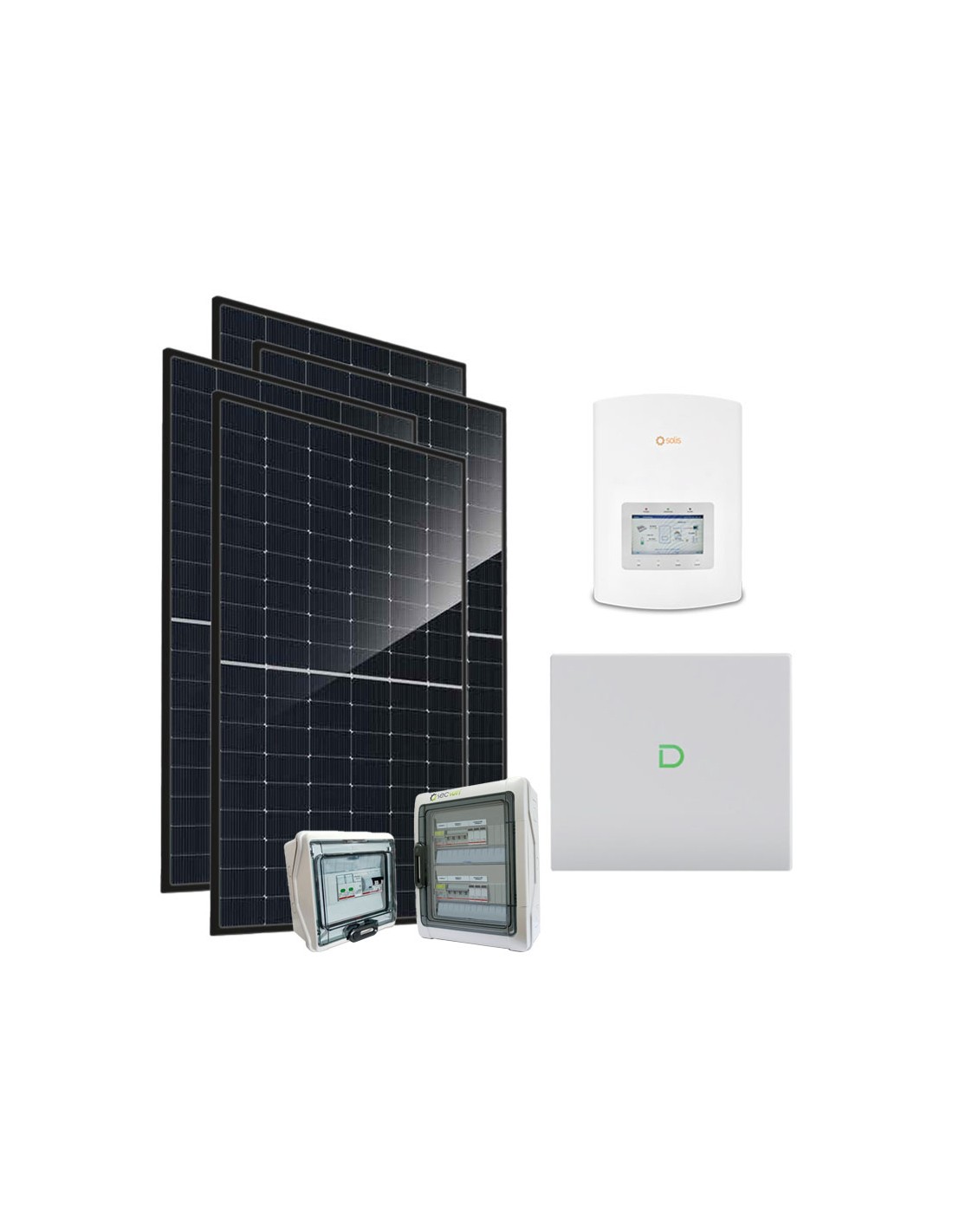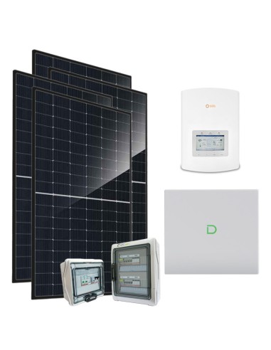 Kit fotovoltaico para conexión a red con almacenamiento de baterías de litio Dyness, módulos fotovoltaicos Trinasolar e inversor Solis.