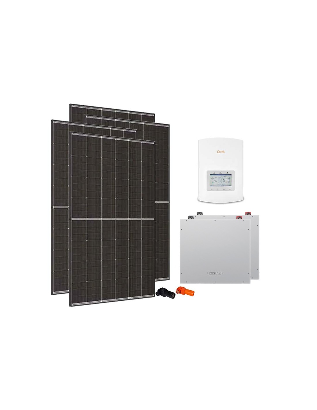 Kit fotovoltaico para conexión a red con almacenamiento de baterías de litio Dyness, módulos fotovoltaicos Trinasolar e inversor Solis.