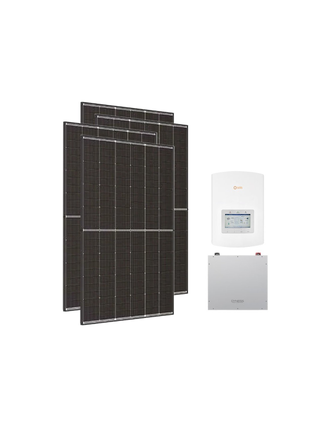 Kit fotovoltaico para conexión a red con almacenamiento de baterías de litio Dyness, módulos fotovoltaicos Trinasolar e inversor Solis.