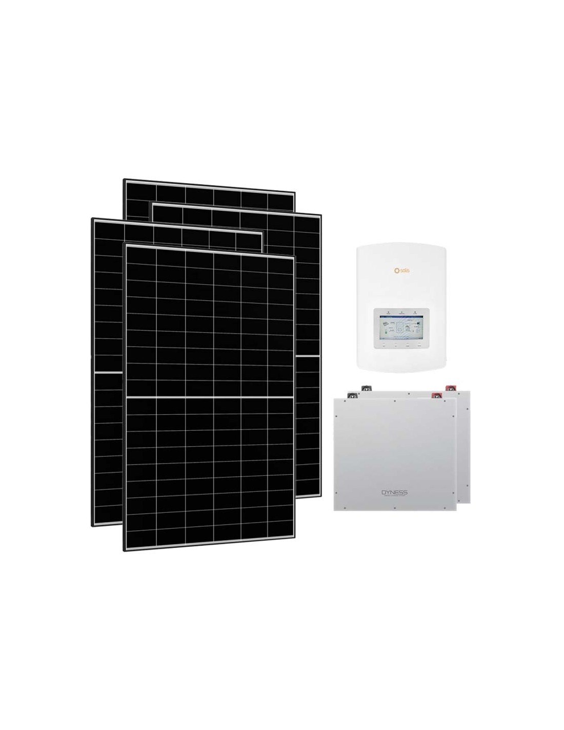 Kit fotovoltaico para conexión a red con almacenamiento de baterías de litio Dyness, módulos fotovoltaicos y inversor Solis.