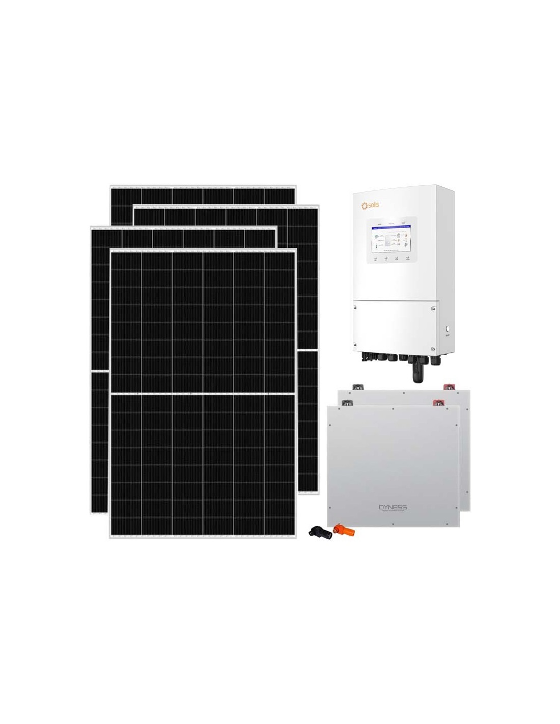 Kit fotovoltaico para conexión a red con almacenamiento de baterías de litio Dyness, módulos fotovoltaicos Trinasolar e inversor Solis.