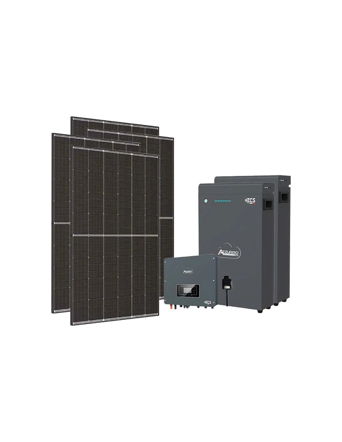 Kit fotovoltaico para conexión a red con acumulador de baterías de litio ZCS Azzurro, módulos fotovoltaicos e inversores ZCS Azzurro.