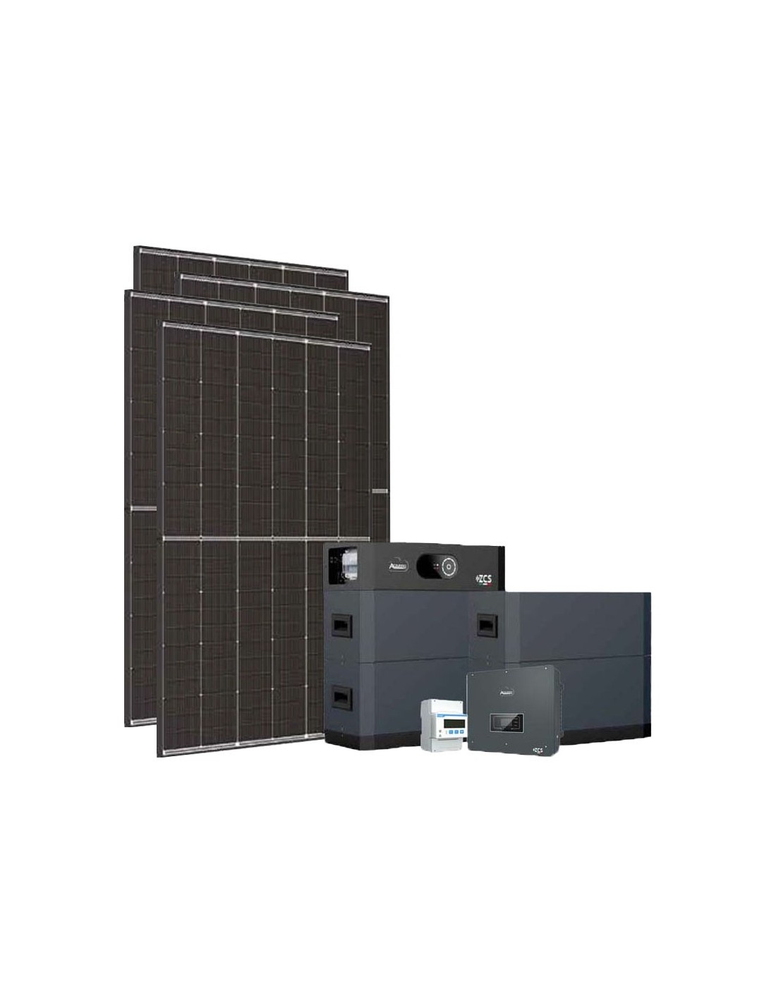 Kit fotovoltaico para conexión a red con acumulador de baterías de litio ZCS Azzurro, módulos fotovoltaicos e inversores ZCS Azzurro.