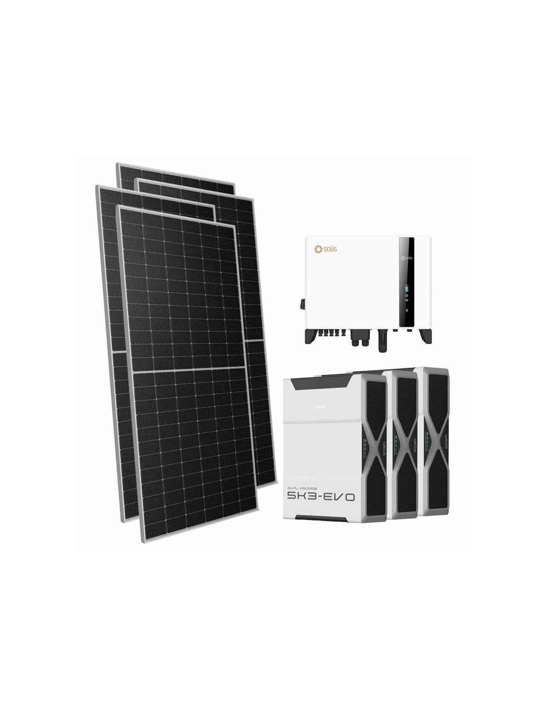 Kit fotovoltaico para conexión a red con almacenamiento en baterías de litio Weco, módulos fotovoltaicos e inversor Solis.