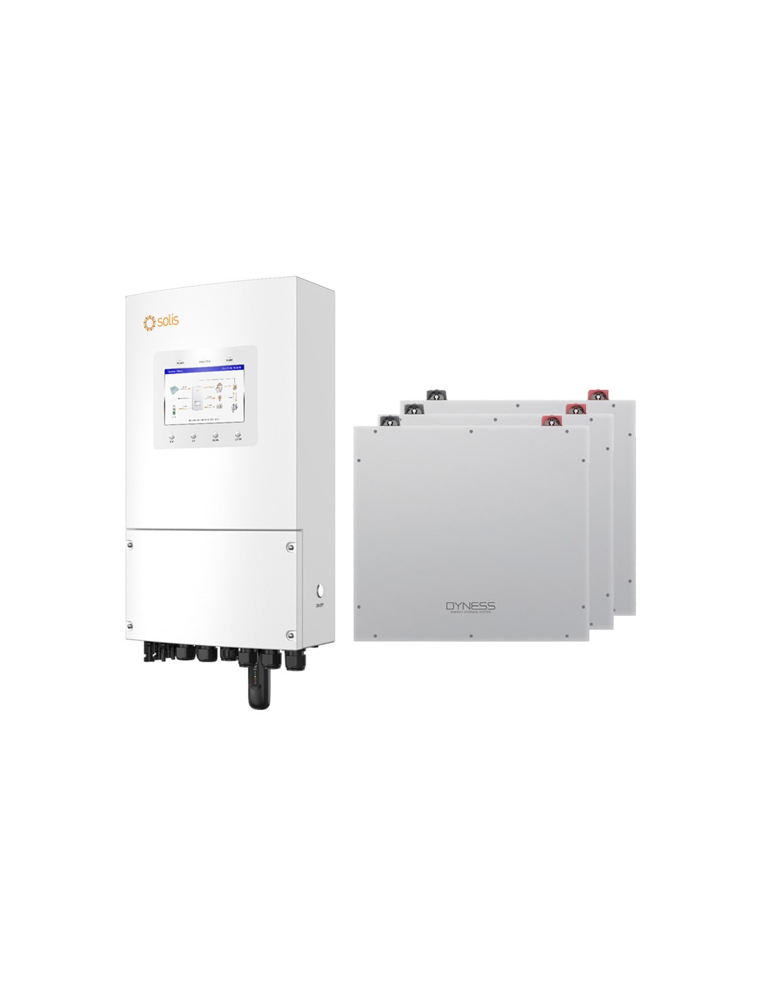Sistema de almacenamiento con inversor Solis para conexión a red con almacenamiento en batería de Litio Dyness.