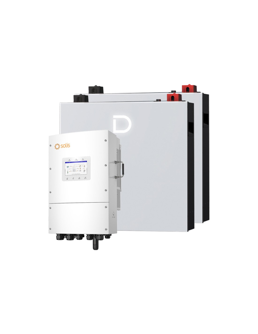Sistema de almacenamiento con inversor Solis para conexión a red con almacenamiento en batería de Litio Dyness.