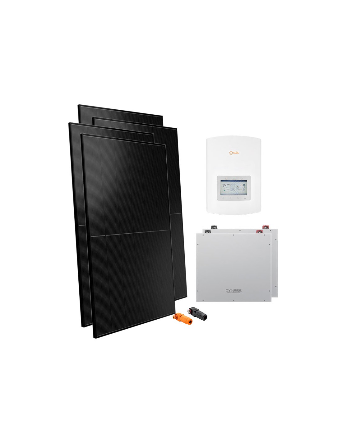 Kit photovoltaïque pour raccordement au réseau avec stockage par batterie lithium Dyness, modules photovoltaïques et onduleur Solis.