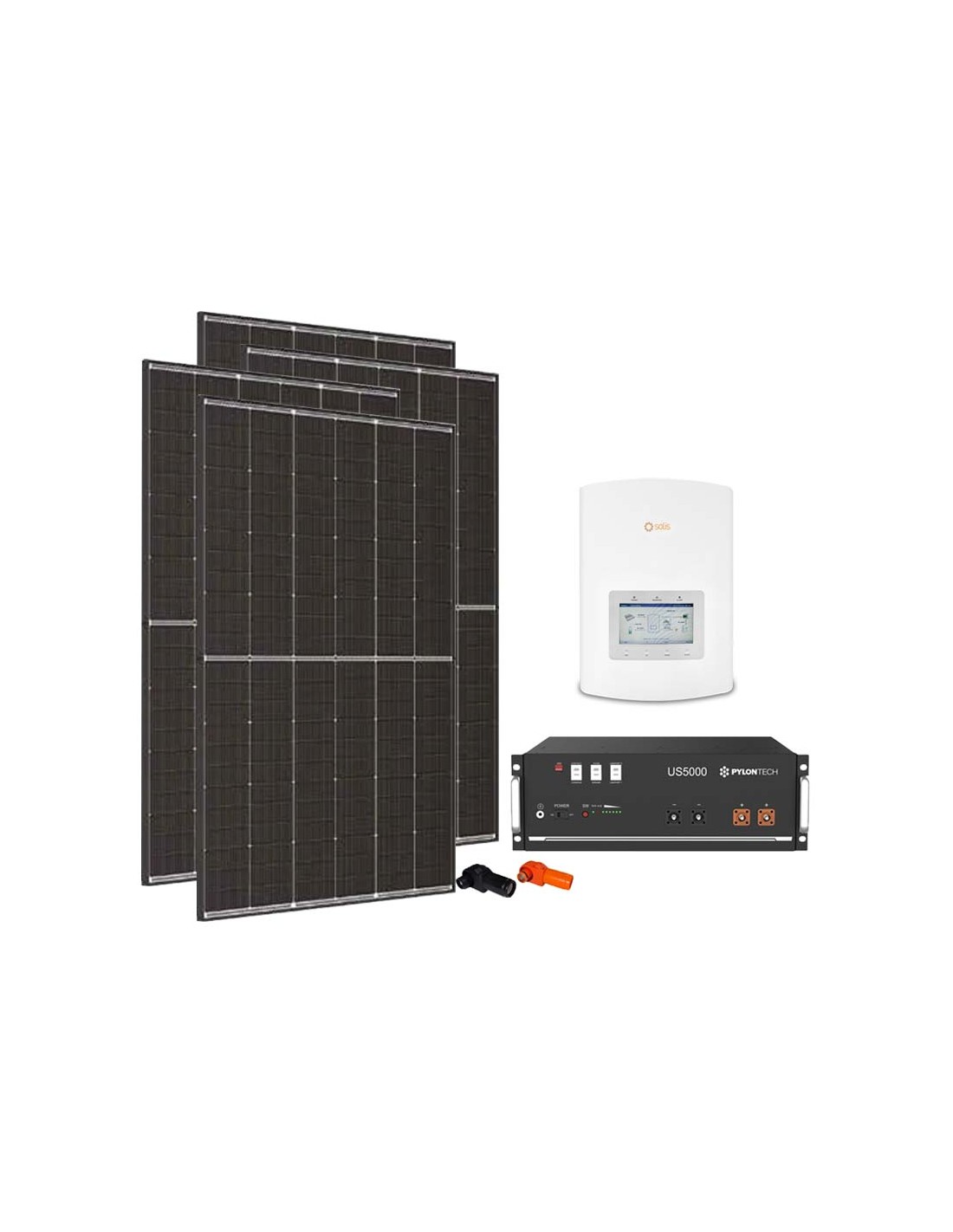 Kit photovoltaïque monophasé 4050W PRO onduleur hybride Solis 3.6kW stockage au lithium Pylontech 4.8kWh