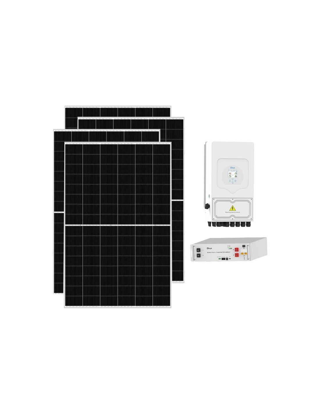 Kit photovoltaïque pour raccordement au réseau avec accumulateurs au lithium Deye, modules photovoltaïques et onduleurs Deye.
