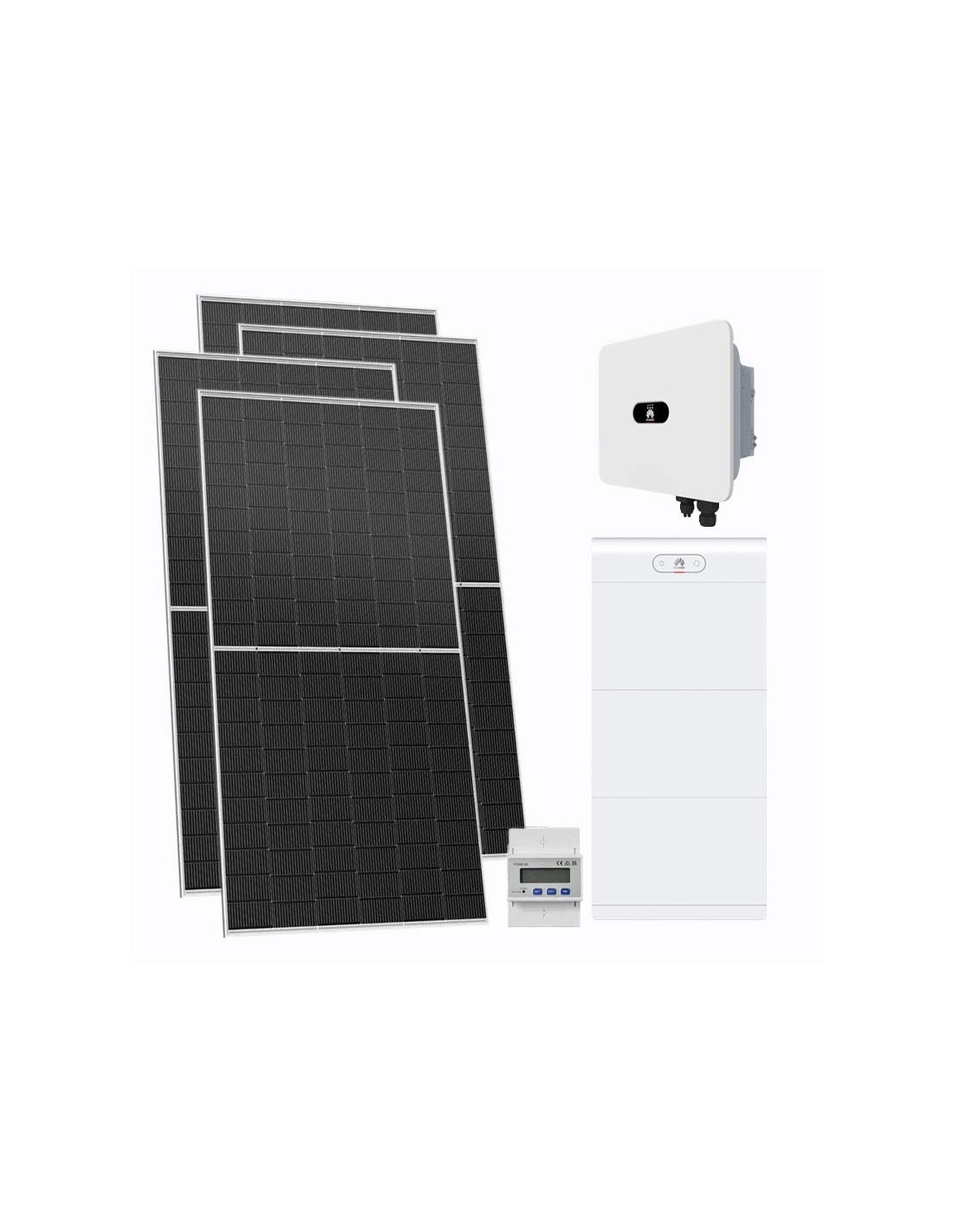 Kit photovoltaïque pour raccordement au réseau avec accumulateurs au lithium Huawei, modules photovoltaïques et onduleurs Huawei.
