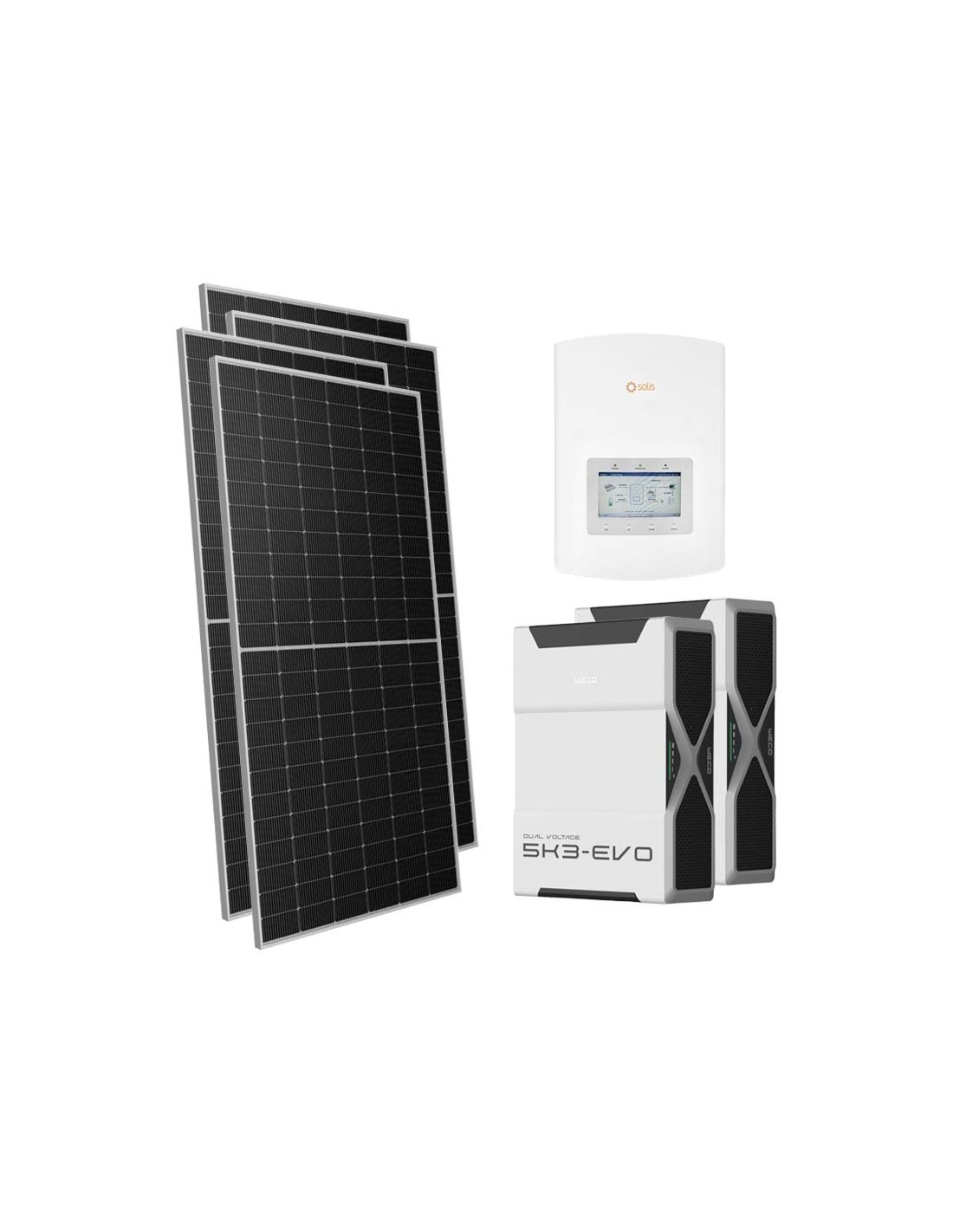 Single-phase photovoltaic kit 4165W Solis 3.6kW inverter 10.4kWh lithium Weco EVO 5k3