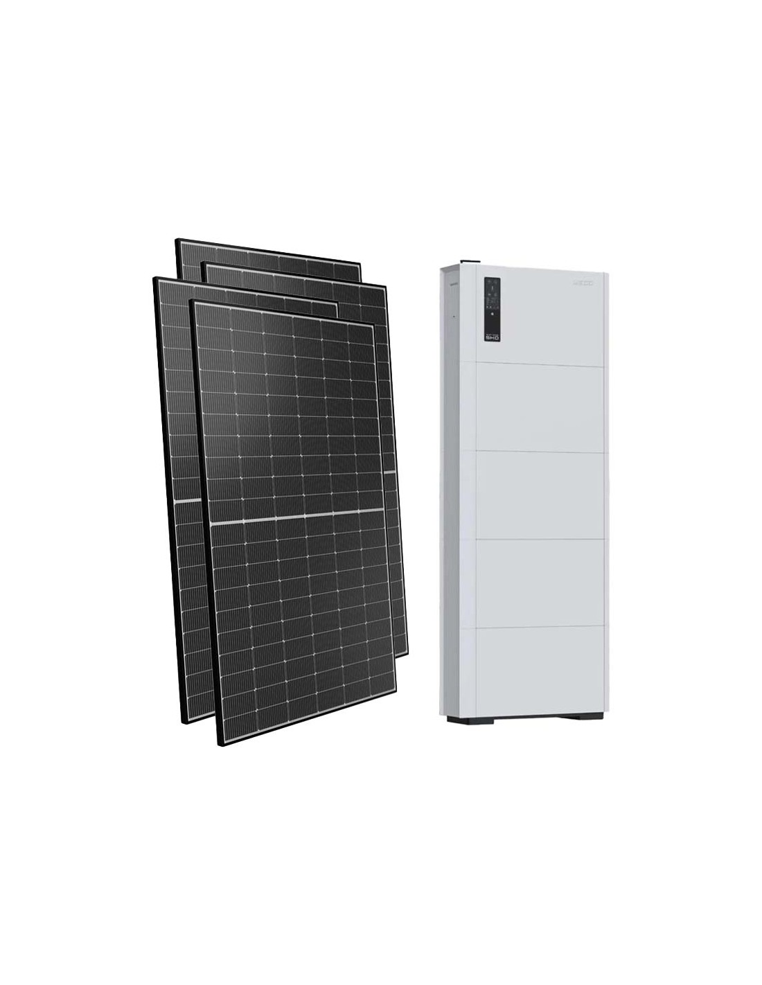 Photovoltaic kit for connection to the grid with Weco lithium battery storage, photovoltaic modules and Weco inverter.