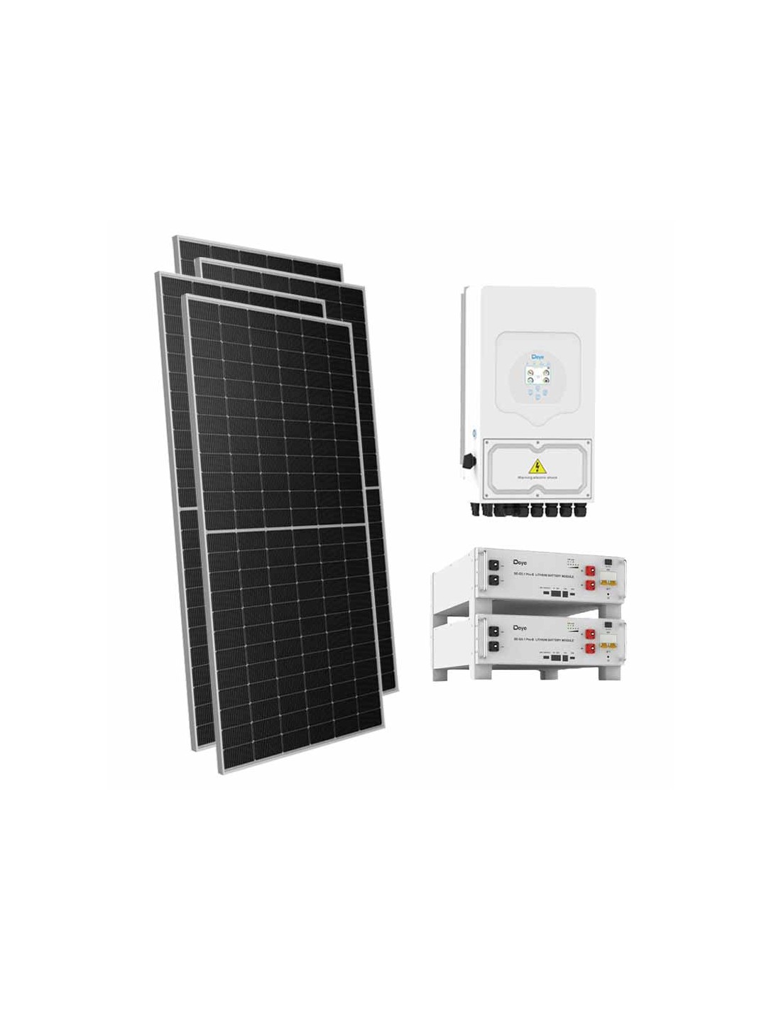 Photovoltaic kit for grid connection with Deye lithium battery storage, photovoltaic modules and Deye inverters.