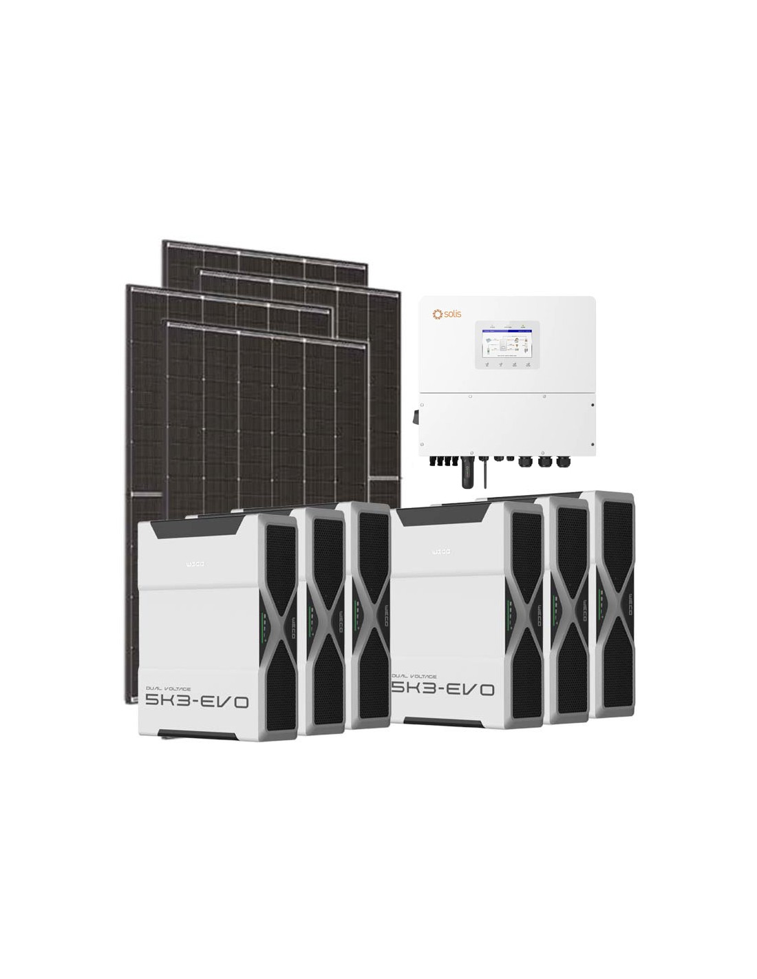 Three-phase photovoltaic kit 20700W Solis 20kW inverter 31.3kWh lithium Weco EVO 5k3