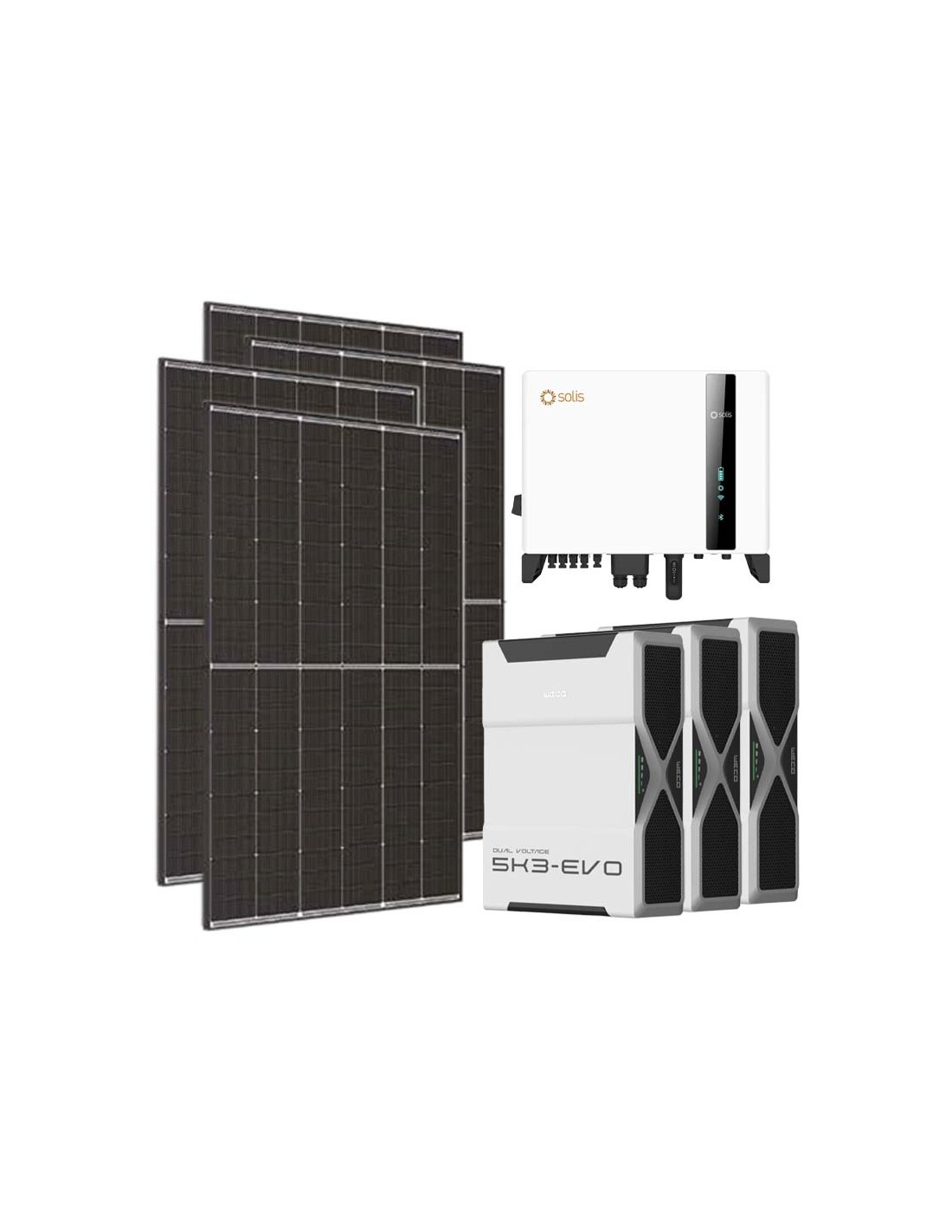 Three-phase photovoltaic kit 8100W Solis 8kW inverter 15.6kWh lithium Weco EVO 5k3