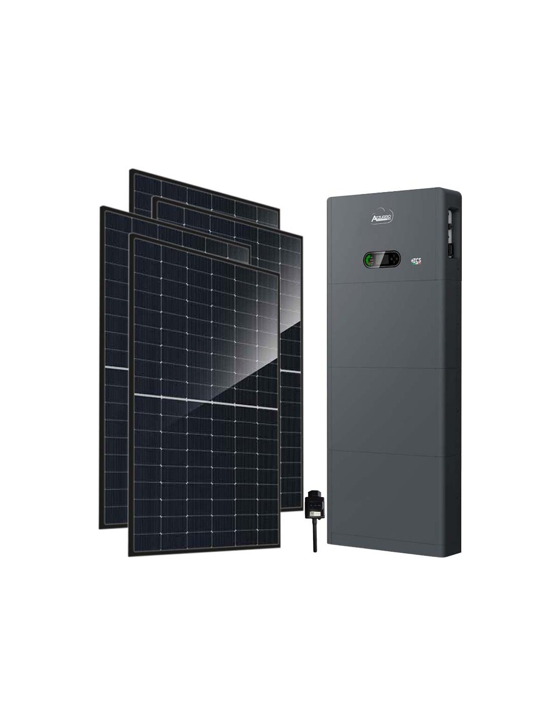 Photovoltaic kit for grid connection with ZCS Azzurro lithium battery storage, photovoltaic modules and ZCS Azzurro inverters.