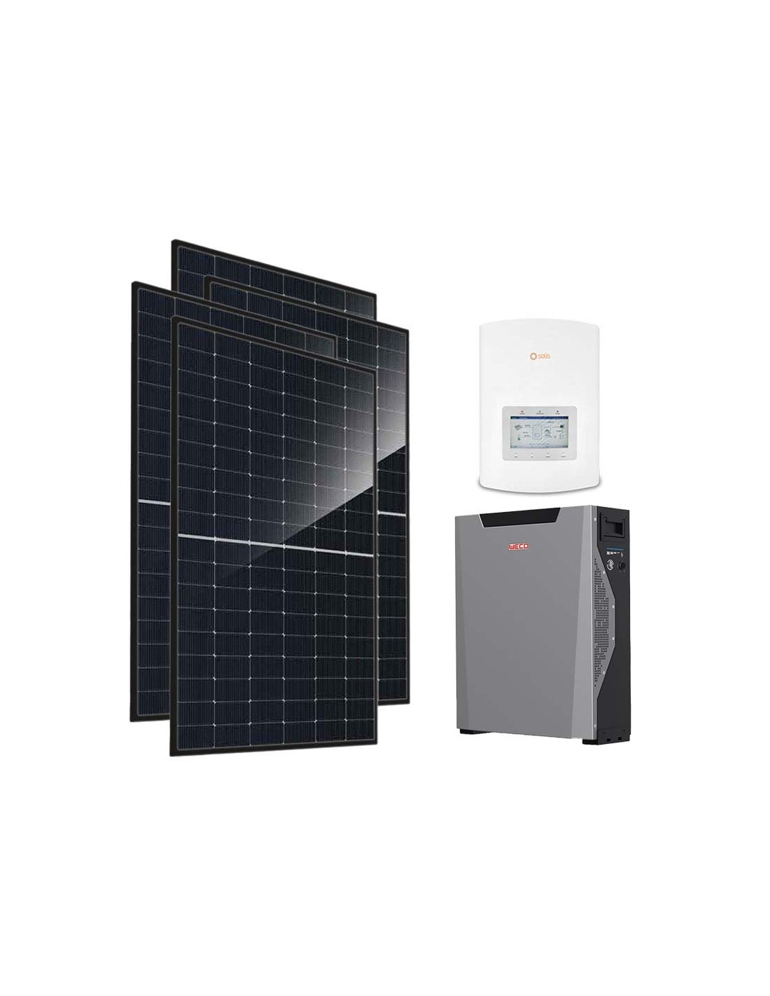 Kit fotovoltaico per la connessione in rete con accumulo in batteria al Litio Weco, moduli fotovoltaici ed inverter Solis.