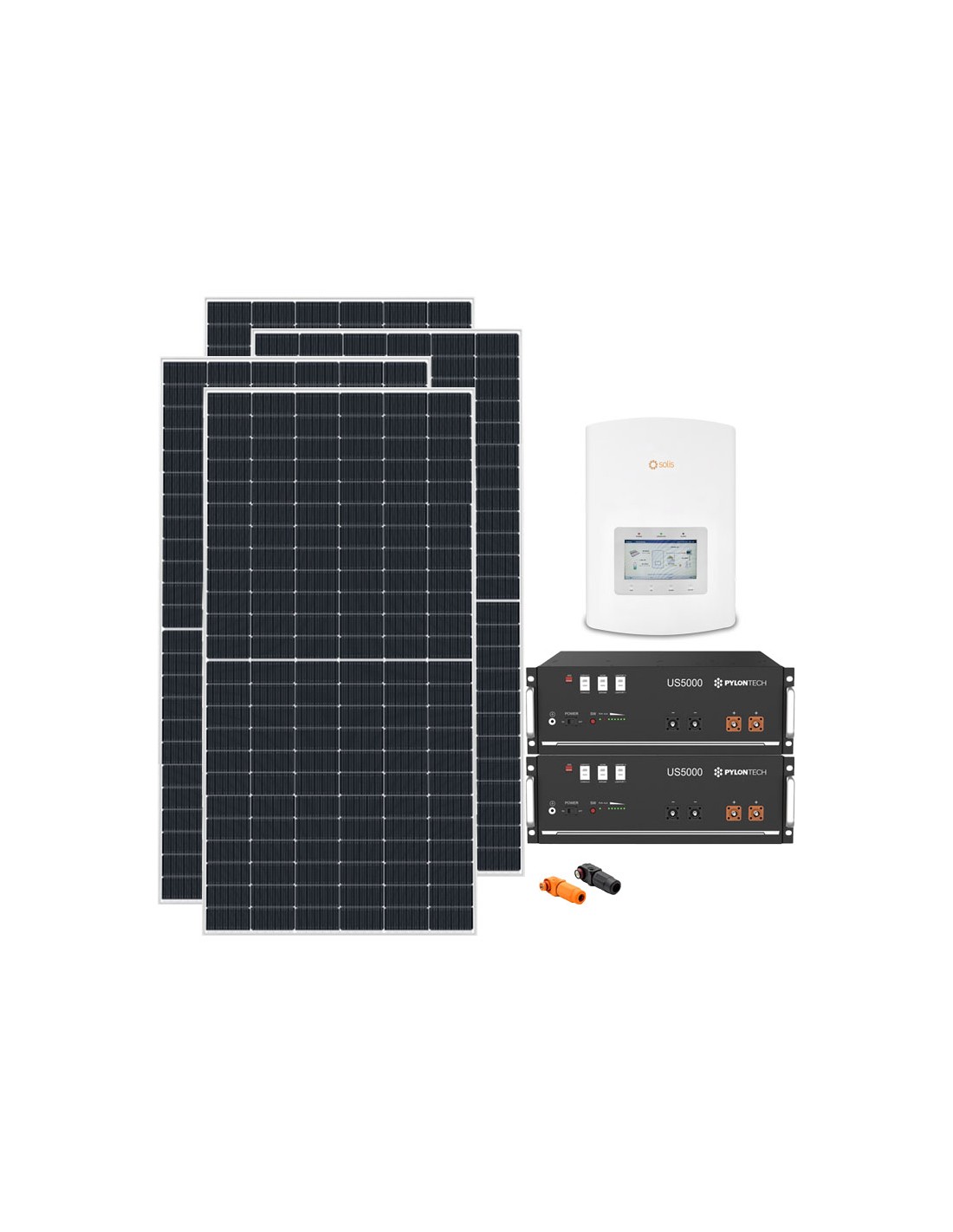 Kit fotovoltaico per la connessione in rete con accumulo in batteria al Litio Pylontech, moduli fotovoltaici ed inverter ibrido Solis.