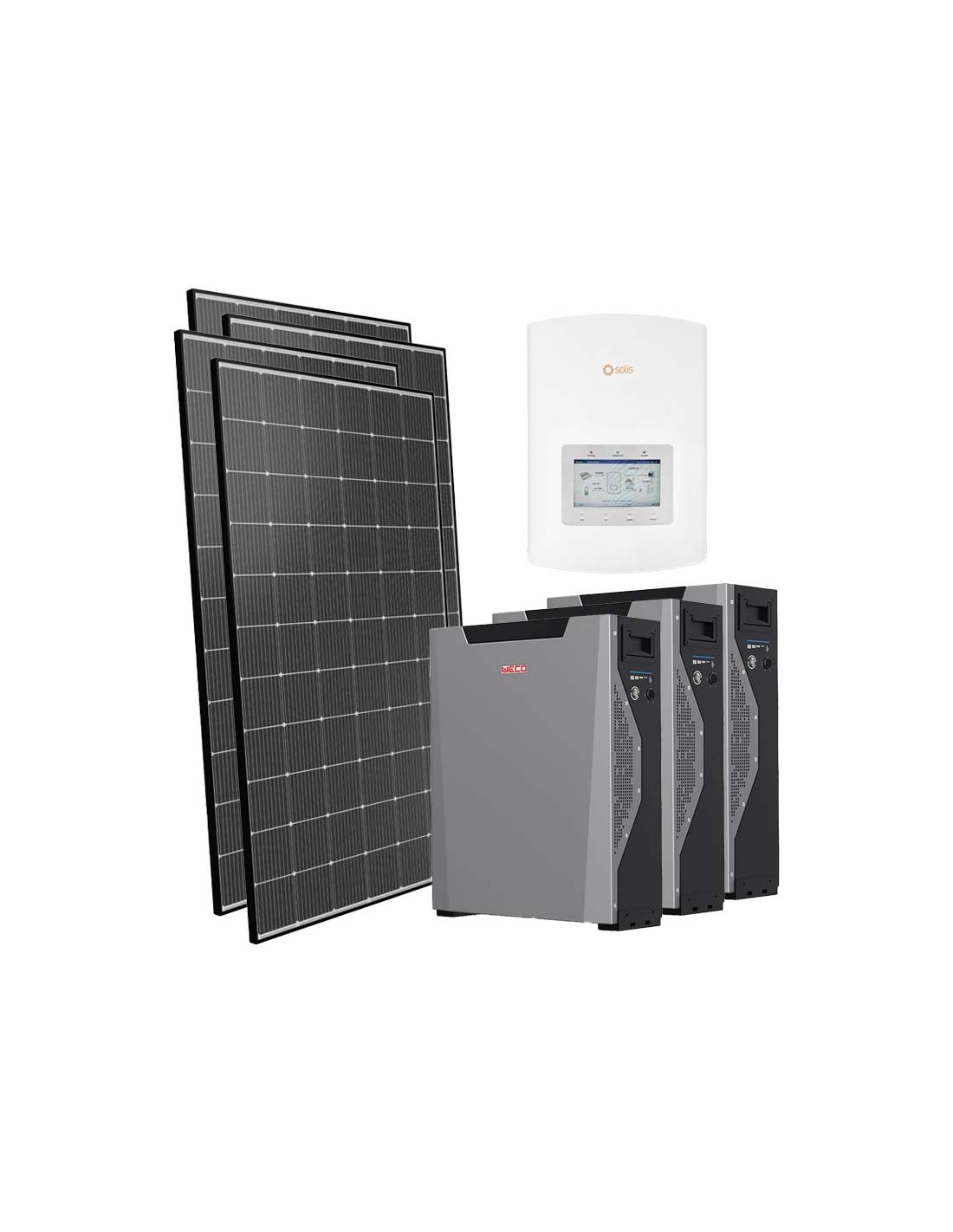 Kit fotovoltaico per la connessione in rete con accumulo in batteria al Litio Weco, moduli fotovoltaici ed inverter Solis.