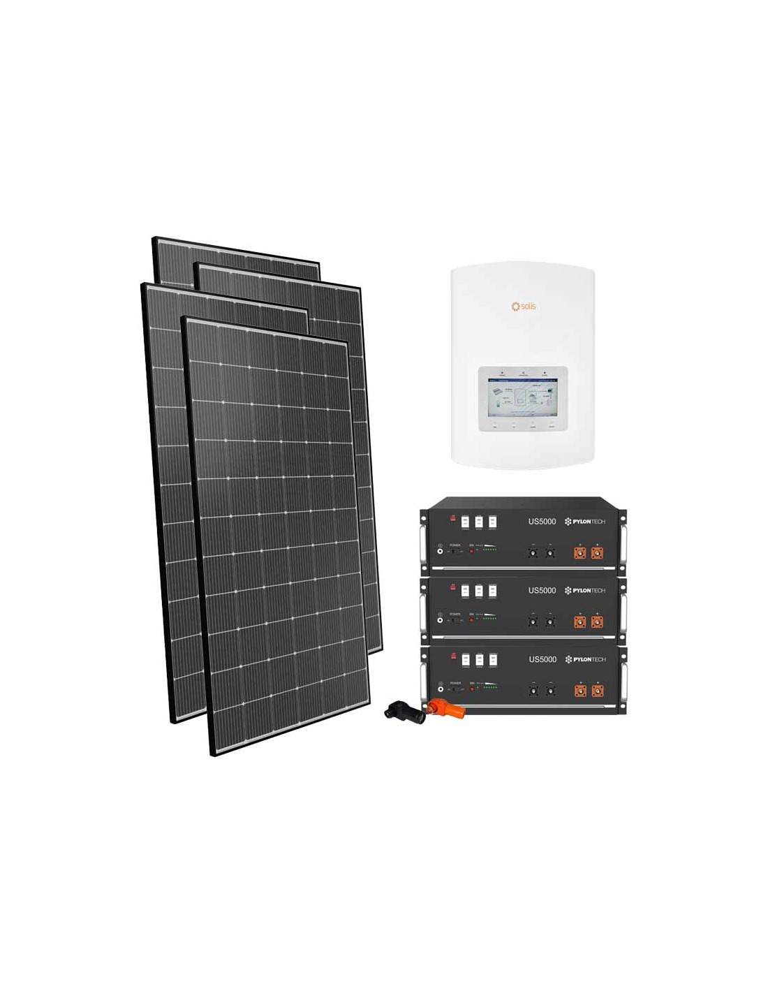 Kit fotovoltaico per la connessione in rete con accumulo in batteria al Litio Pylontech, moduli fotovoltaici ed inverter ibrido Solis.
