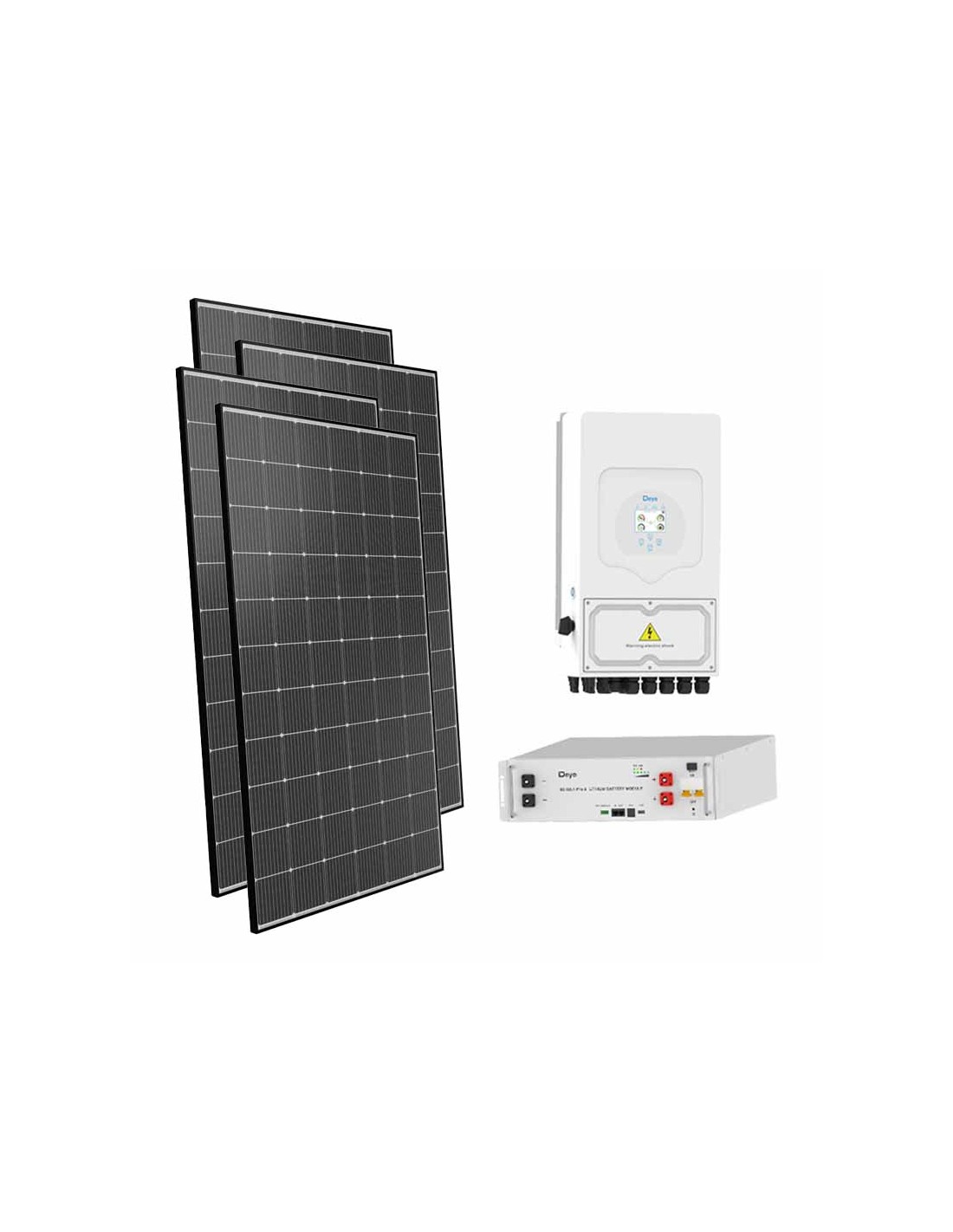 Kit fotovoltaico per la connessione in rete con accumulo in batteria al Litio Deye, moduli fotovoltaici ed inverter ibrido Deye.
