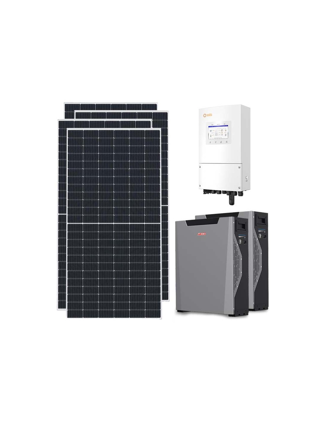 Kit fotovoltaico per la connessione in rete con accumulo in batteria al Litio Weco, moduli fotovoltaici ed inverter Solis. Il sistema conforme alla normativa CEI-021 per l’accumulo fotovoltaico.