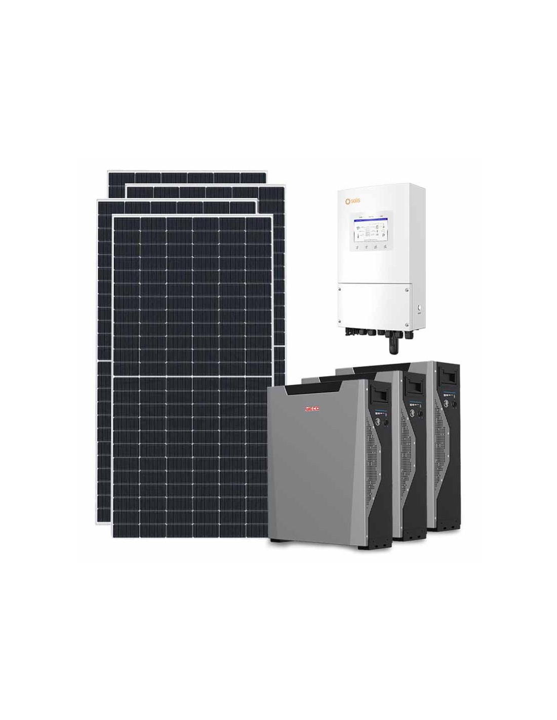 Kit fotovoltaico per la connessione in rete con accumulo in batteria al Litio Weco, moduli fotovoltaici ed inverter Solis. Il sistema conforme alla normativa CEI-021 per l’accumulo fotovoltaico.