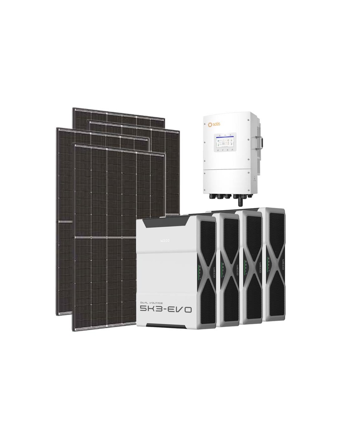 Kit fotovoltaico trifase 10800W inverter Solis LV 10kW litio 20.8kWh Weco EVO 5k3