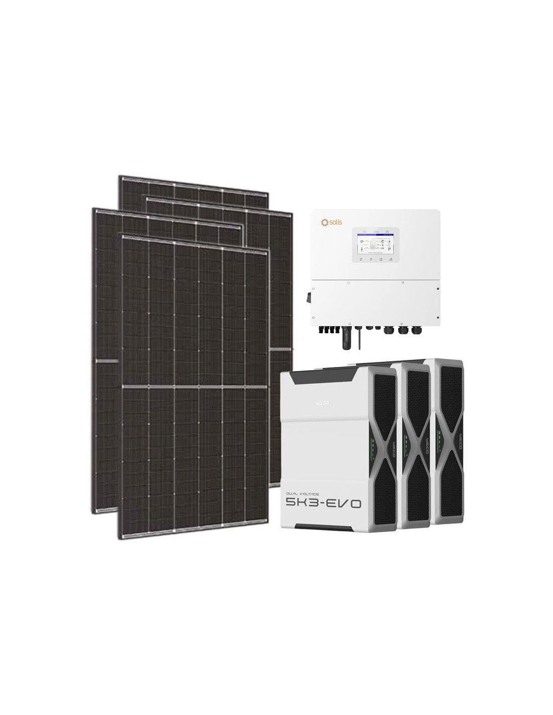 Kit fotovoltaico trifase 15300W inverter Solis 15kW litio 15.6kWh Weco EVO 5k3